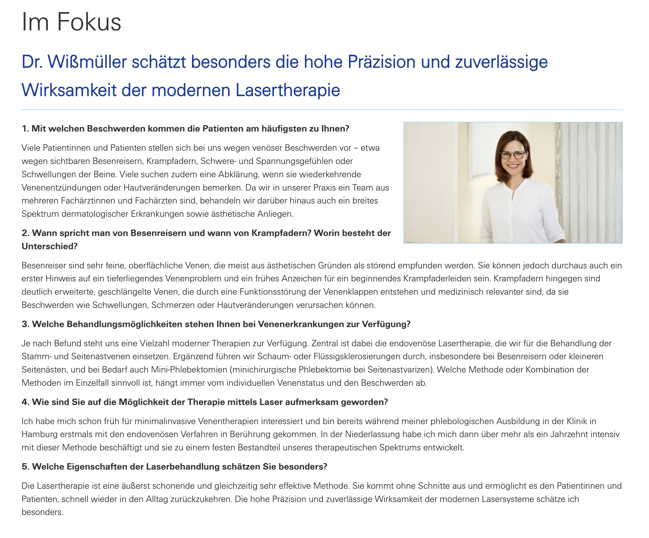 „In einem aktuellen Fachbeitrag erläutert Frau Dr. Ester Wissmüller die hohe Präzision und zuverlässige Wirksamkeit moderner Lasertherapien.“